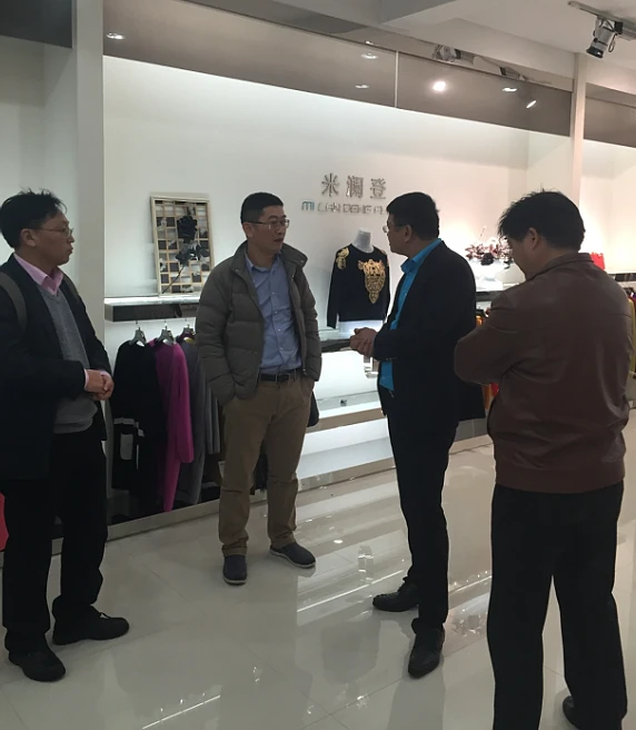 当天下午,各位女神继续欢乐之行,来到位于桐乡城东的浙江米澜登针织时装有限公司,进行了参观考察,听取了公司董事长、温州桐乡商会常务副会长胡建东就企业生产、管理、经营、研发情况的介绍;出差在外地的该公司总经理刘海霞女士,专门来电话,对杭州金华商会女同胞一行来访米澜登表示热烈欢迎,并互致节日祝贺。期间,刘红军执行会长、朱文正轮值会长与胡建东董事长还进行了商会建设情况的交流。参观考察中,女神们对米澜登公司的毛衫时装产生了极大兴趣,纷纷试穿选购,并对米澜登公司的经营管理和产品品质给予了高度肯定和良好评价。