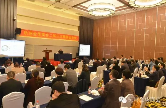 2016年3月27日上午,杭州金华商会在东阳凤凰谷天澜酒店举行了二届三次全体理事会议,特邀浙江省人大常委会副主任、浙商发展研究院院长、商会高级顾问王永昌为与会人员解读全国“两会”精神以及“十三五”规划期间中国经济发展走向,浙商发展研究院副院长郑明治及该院有关人员到会指导,楼永良会长出席会议并作了讲话。召集人吕金土主持了会议。