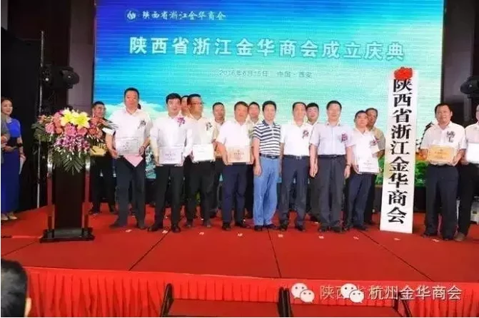 改革开放之初,金华籍工商界人士分赴西安创业。义乌的小商品、永康的五金家电、东阳的木雕、磐安的中药材等等早已走进三秦大地的千家万户。上世纪九十年代以来,以中天、广厦、海天等为代表的建筑名企,在三秦热土上建起一座座地标性建筑。如今活跃在陕西创新创业热土上的有8万多婺商。陕西金华商会的成立,为在陕婺商提供一个创新创业的平台。