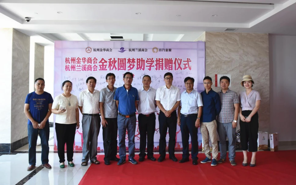 8月19日,杭州金华商会、杭州兰溪商会金秋圆梦助学捐赠活动在兰溪总部大楼举行,副会长单位——小九金服兰溪公司同时举行开业仪式。受杭州金华商会理事会和会长楼永良、执行会长刘红军的委托,商会召集人吕金土、理事吴春燕、副秘书长汤小倩等一行6人与副会长、小九金服董事长陈旭义一道出席活动。兰溪市委常委楼琅坚、市委常委、统战部部长吴一成及兰溪市级机关有关部门负责人出席仪式。