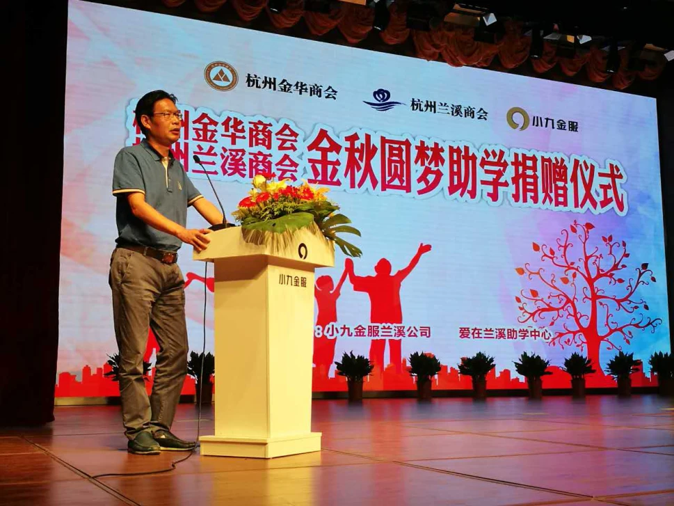 本次活动由陈旭义创办的小九金服兰溪公司承办,爱在兰溪助学中心协办,共计资助贫困学子117名,资助金额38万元。今年6月以来,副会长陈旭义率先倡议,会长楼永良带头表示积极响应和支持,执行会长刘红军和广大会员纷纷表示加入行动,并携手杭州兰溪商会,帮助兰溪百名同学“金秋圆梦”,两家商会在短时间内筹集到大额助学善款。