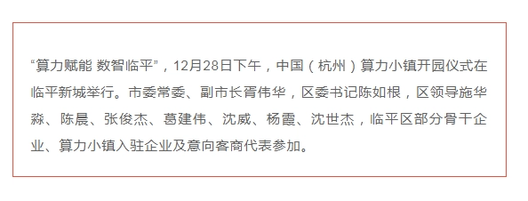 陈如根在致辞中表示,当前临平正紧紧围绕高水平建设“数智临平·品质城区”发展目标,以国家级经济技术开发区、临平新城和正在规划建设中的大运河科创城三大平台为主阵地,全力推动高端装备制造、生命健康、数字时尚主导产业发展。推动算力产业发展,与打造“数智临平”的战略目标高度契合,更是临平谋划布局未来产业、积极培育产业发展新动能的有力抓手。今后,算力小镇将以打造长三角算力产业应用端枢纽中心为目标,加快抢占芯片设计、人工智能两大主赛道,努力构建“数字经济+硬科技”融合发展的算力产业生态集群。陈如根代表区委区政府发出诚挚邀请,欢迎优秀企业家来临平投资创业。他表示,临平区委区政府将始终秉持“店小二”精神,在保障项目推进、服务企业人才、助力企业发展等方面给予最强有力保障、提供最贴心服务,全力为临平数字经济发展保驾护航。