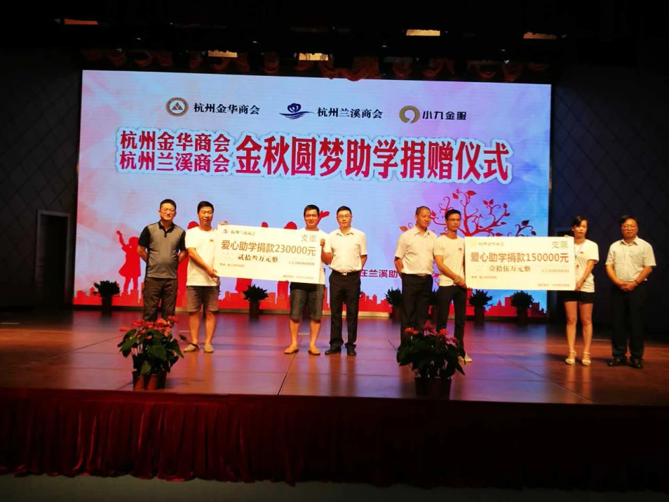 本次活动由陈旭义创办的小九金服兰溪公司承办,爱在兰溪助学中心协办,共计资助贫困学子117名,资助金额38万元。今年6月以来,副会长陈旭义率先倡议,会长楼永良带头表示积极响应和支持,执行会长刘红军和广大会员纷纷表示加入行动,并携手杭州兰溪商会,帮助兰溪百名同学“金秋圆梦”,两家商会在短时间内筹集到大额助学善款。